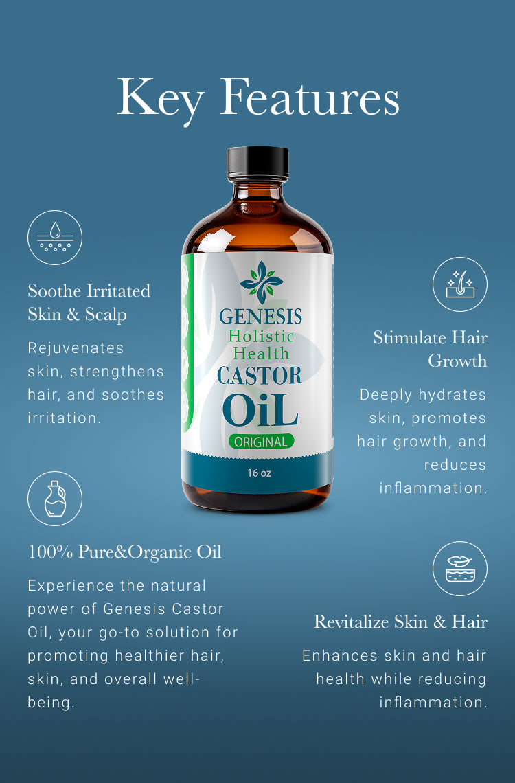 Packed with the potent benefits of ricinoleic acid, Genesis Castor Oil is your all-in-one beauty and wellness essential. Free from additives, chemicals, and preservatives, it’s perfect for those seeking a natural remedy to elevate their self-care routine. Elevate your beauty and wellness with the purity and effectiveness of Genesis Castor Oil.