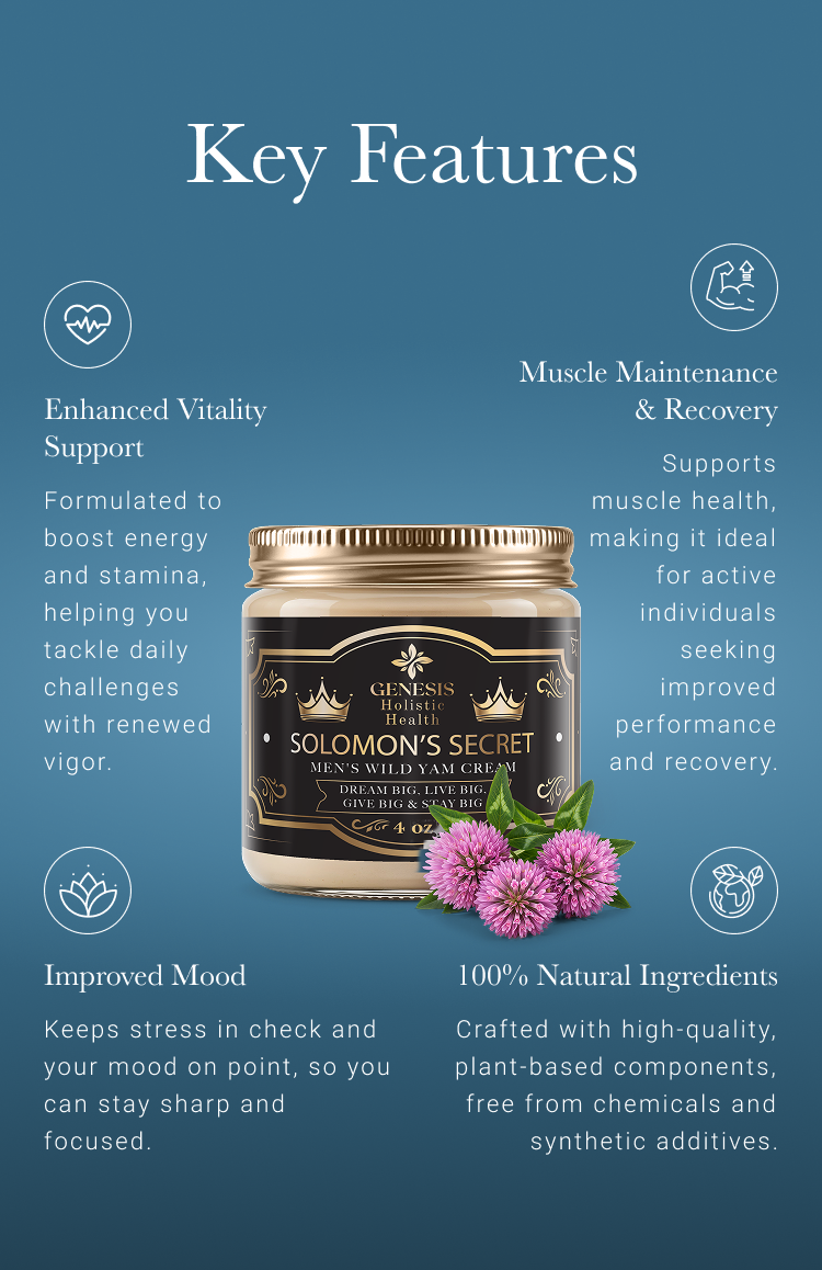 Get ready to reclaim your energy and live life at full throttle with Solomon's Secret Men's Vitality Support Cream. Your journey to being your best self starts now!